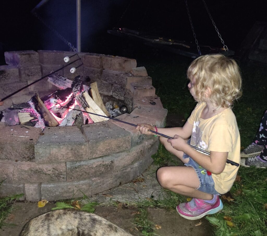 My granddaughter stayed with us for the weekend. She can be a bit picky with food, but since she loves fires, we planned a fire on Friday evening so all the kids could roast their own hotdogs for dinner.