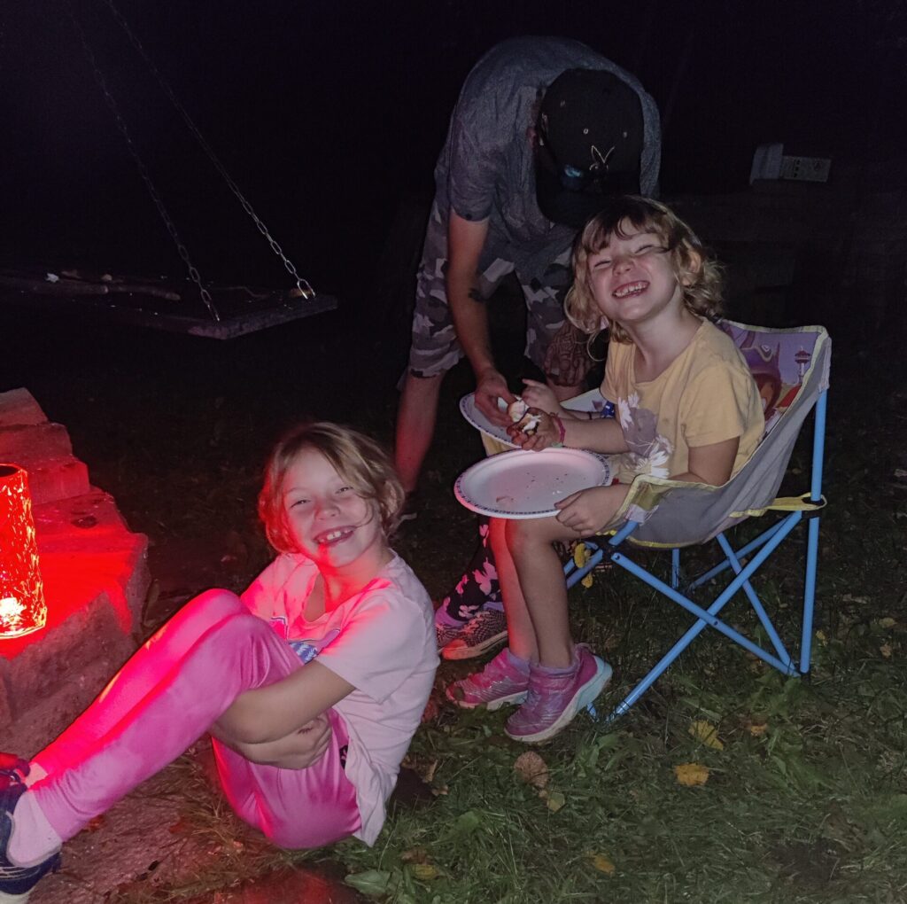All three girls had a wonderful evening, savoring their hotdogs and, of course, enjoying roasted marshmallows afterward.